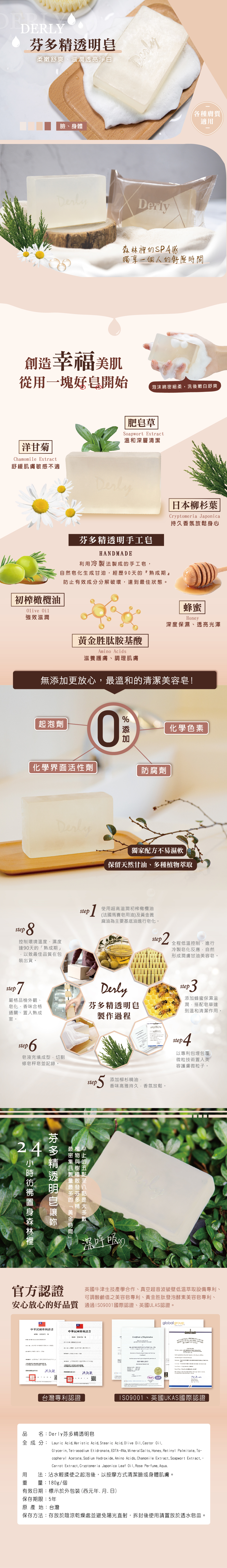 使用法國馬賽皂用油,添加蜂蜜保濕滋潤,